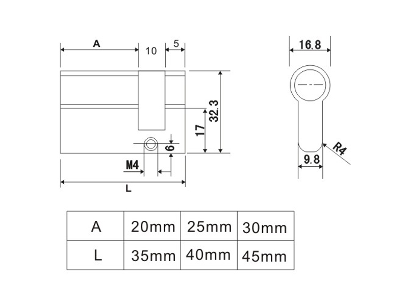 RCR-04半邊帶匙鎖芯,半邊帶鑰匙可開,一邊用于管井門,隱形門,可定制長度