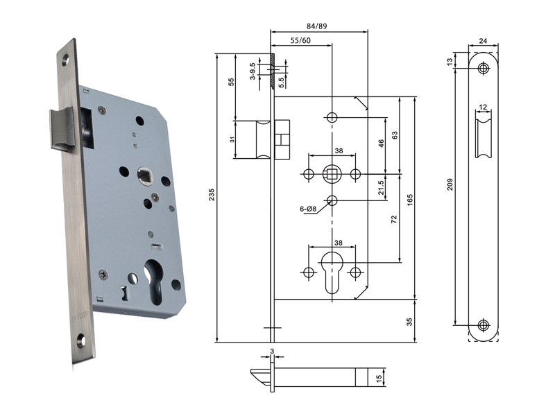 RML-15 5572/6072單斜舌通道鎖體,把手開戶斜舌,不配鎖芯