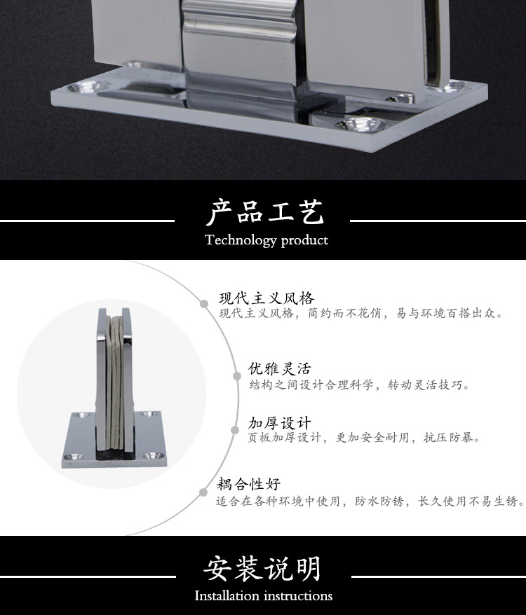2、主要用于各種玻璃門、淋浴房門等。夾6-12mm玻璃