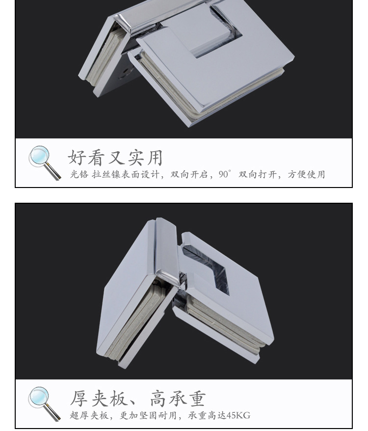 2、主要用于各種玻璃門、淋浴房門等。夾6-10mm玻璃