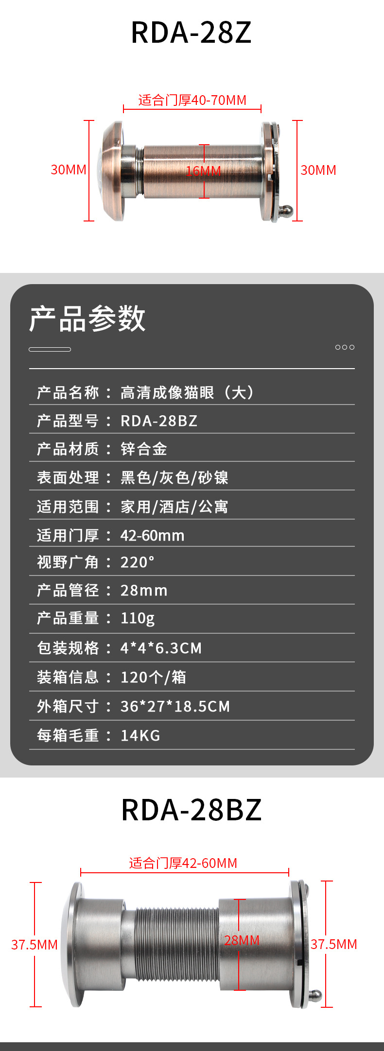 RDA-28Z 高清廣角防盜門貓眼