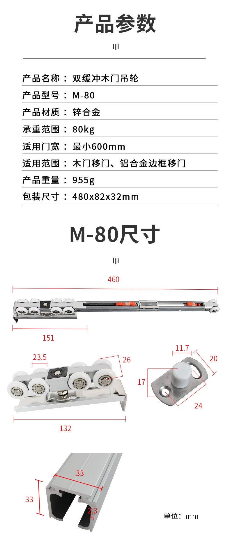 M70 M80 8輪靜音軸承吊輪平移門實木門吊輪