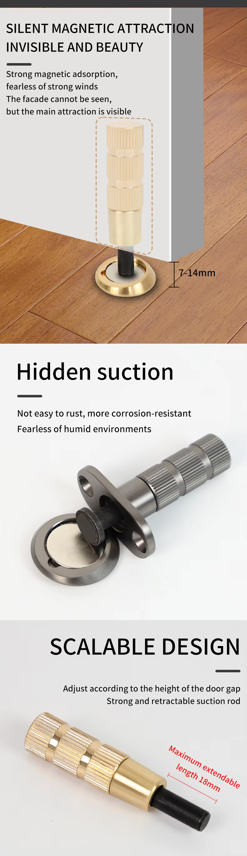 L108 Solid Brass Adjustable Telescoping Door Stopper