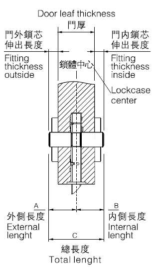 1. 鎖芯的總長度等于門厚加上門兩側(cè)鎖芯突出長度之和