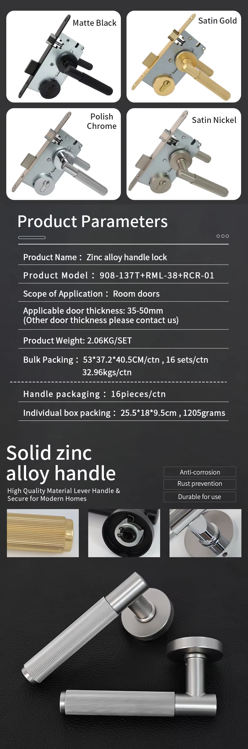 908-137T Stripe Pattern Zinc Alloy Solid Split Door Locks