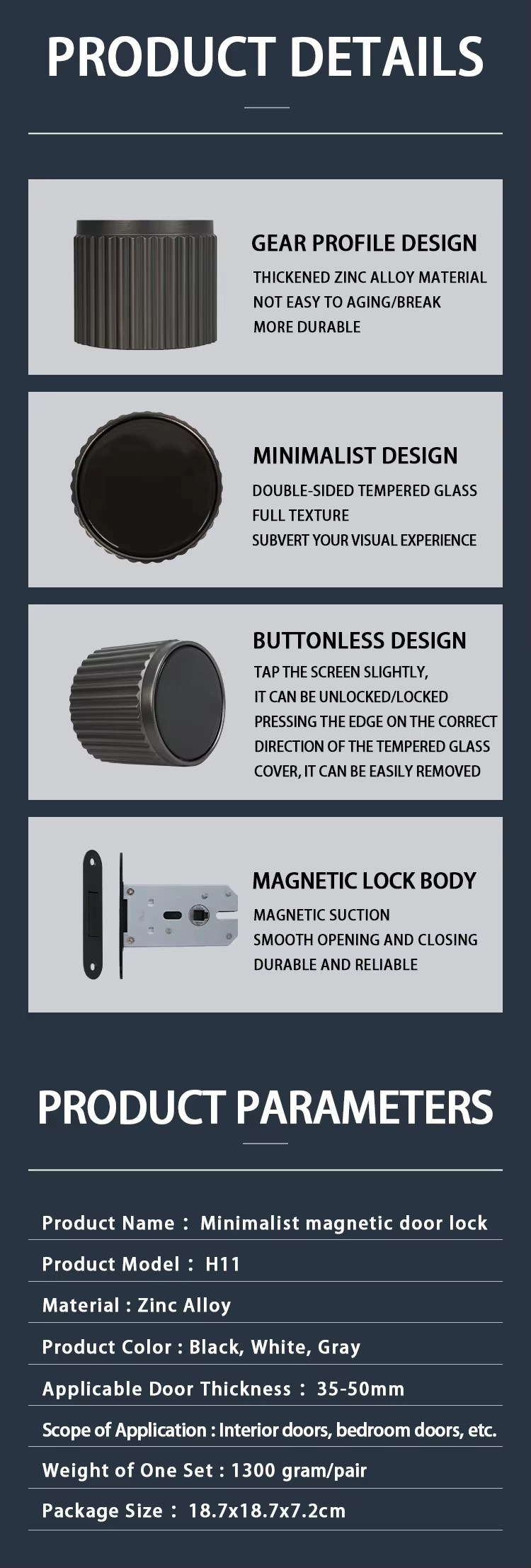 H11 Round Gear Wheel Handle Design Silent Magnetic Door Lock