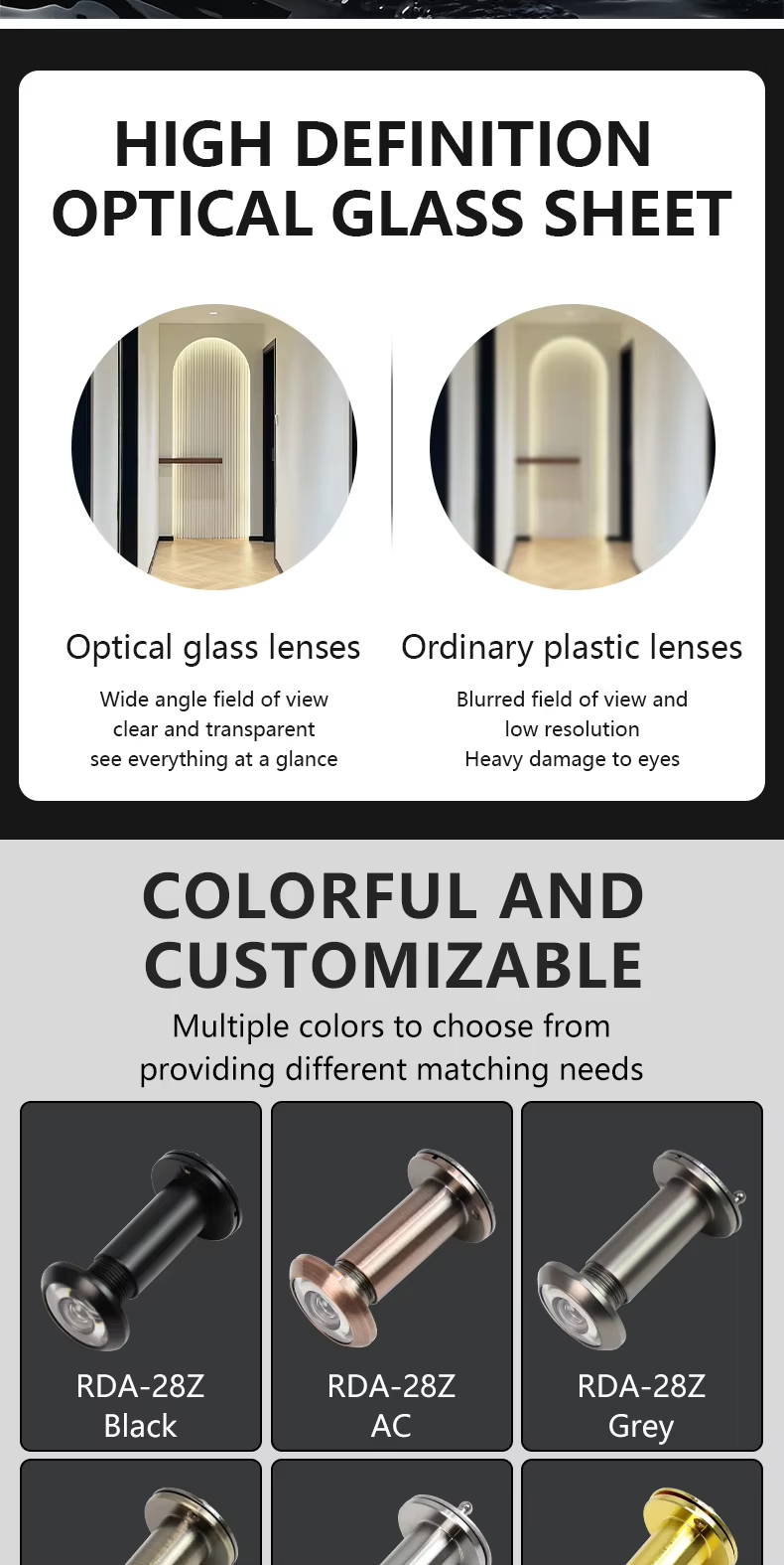 RDA-28Z Large Door Viewer 220-degree Rotating Privacy Cover