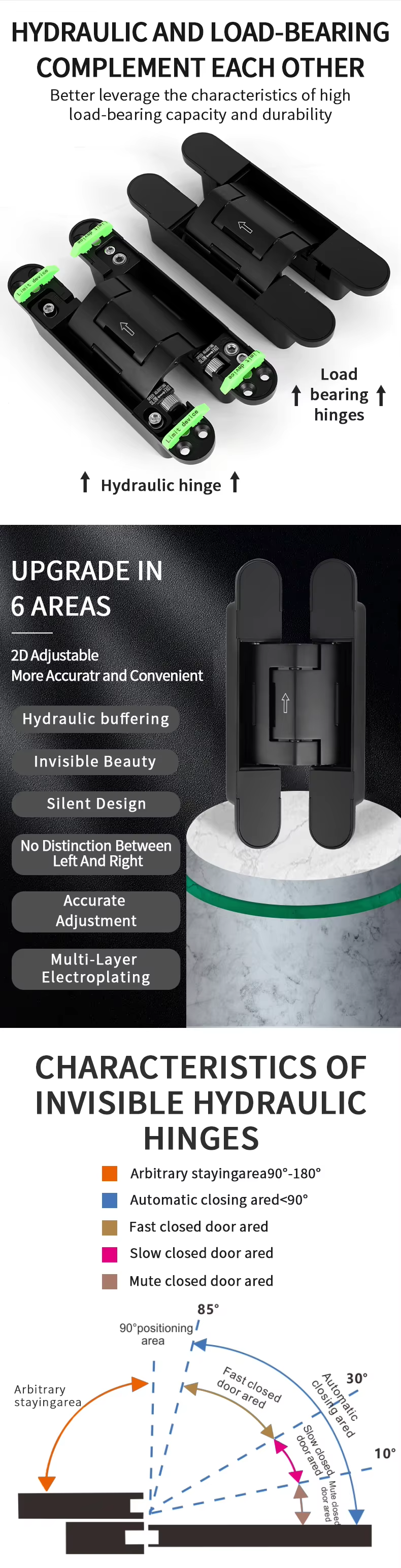RHH-80 New Technique Hydraulic Buffer Adjustable Invisible Hinges