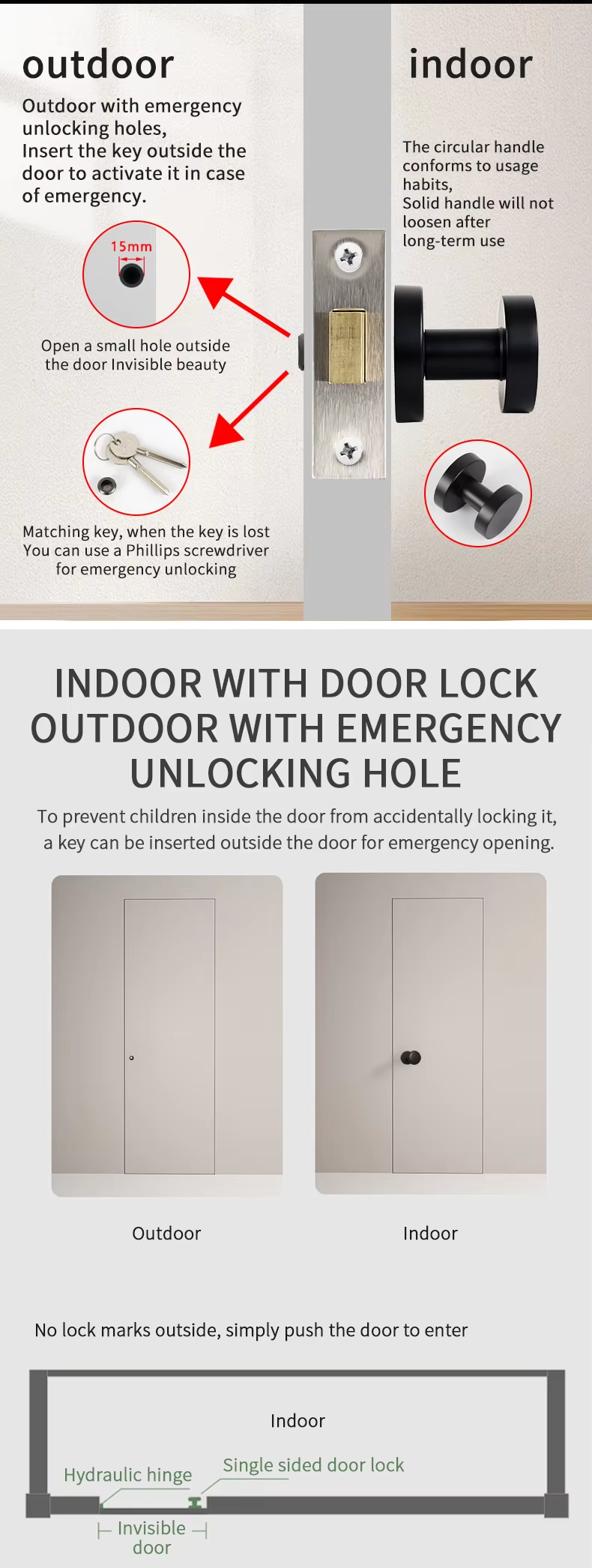 RHL-03 Emergency Hidden Keyhole Interior Door Lock