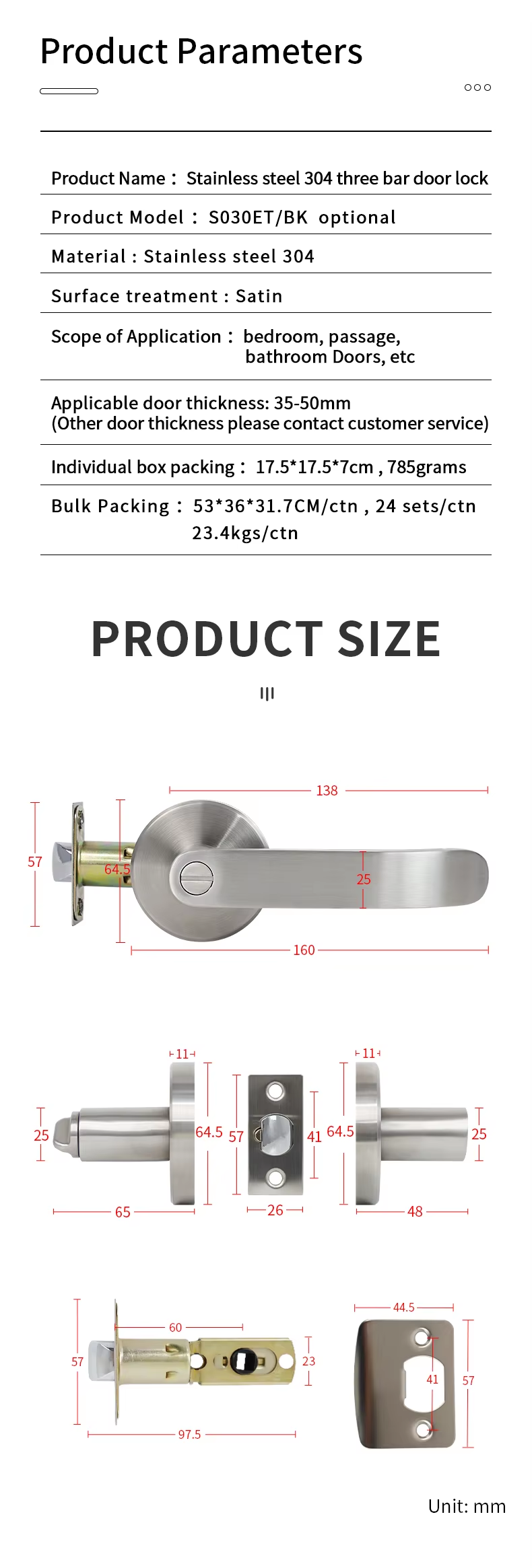 S030ET Security Safety Privacy Keyed Version 3 Point Tubular Lock