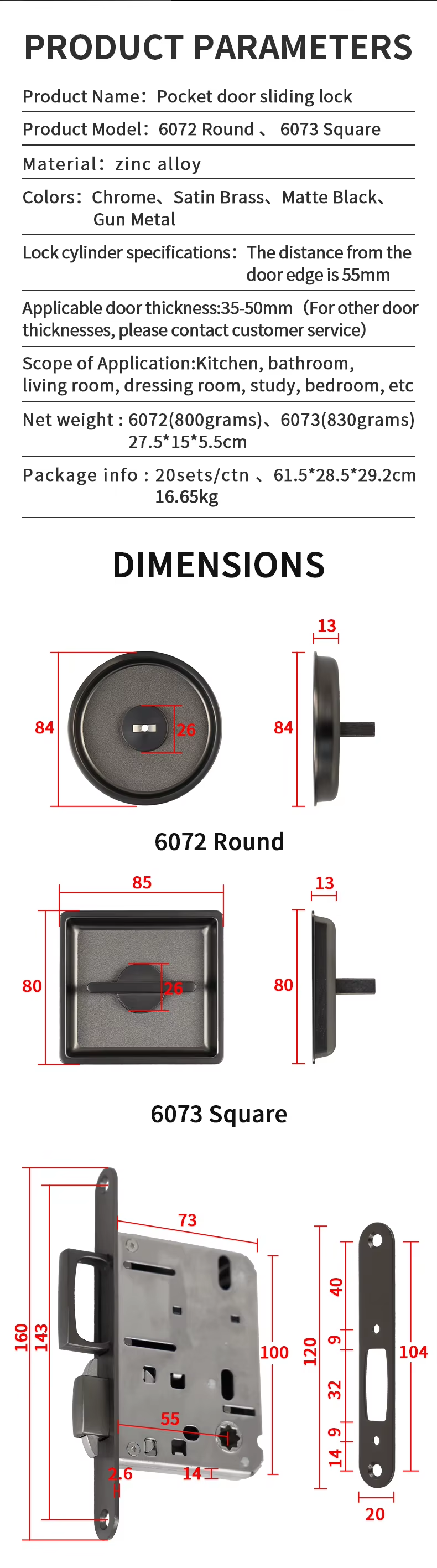 6072/6073 Embedded Pocket Sliding Door Privacy Lock